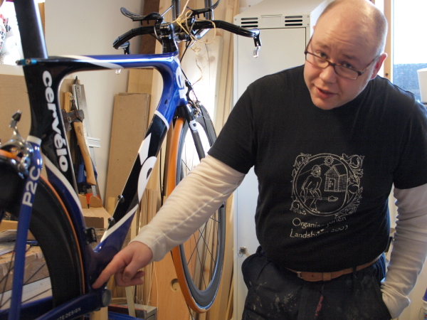 I kjellaraen heng det ein nesten ferdigbygd sykkel. Ole Kristian liker å laga ting; i tillegg til å vera fascinert over teknologien synest han er vakkert å vera herre over den. Han har kjøpt ei brukt temporamme som han driv og monterer. Vi prøver å ta eit bilde av byggjeprosjektet og skaparen.
